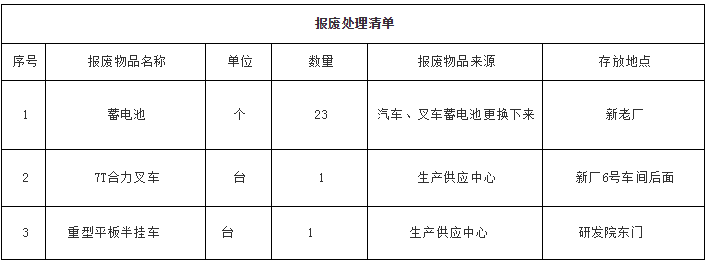 三、招标范围:科达洁能(广东)报废蓄电池、叉车、拖板车的处理。