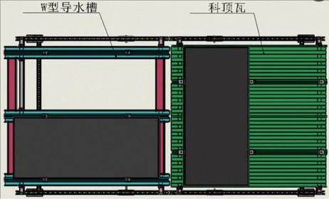 W型导水槽系统(核心专利:ZL202021037706.2),系统特点:简洁稳固、安装快速便捷;模块化设计,适应不同形状的屋顶。