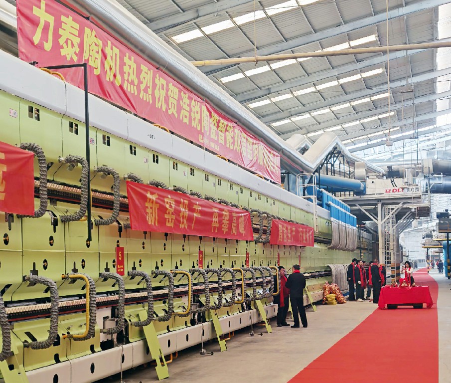 日前,力泰陶机与浩锐陶瓷合作的第三条生产线Nymph新质系列双层窄体窑点火投产。