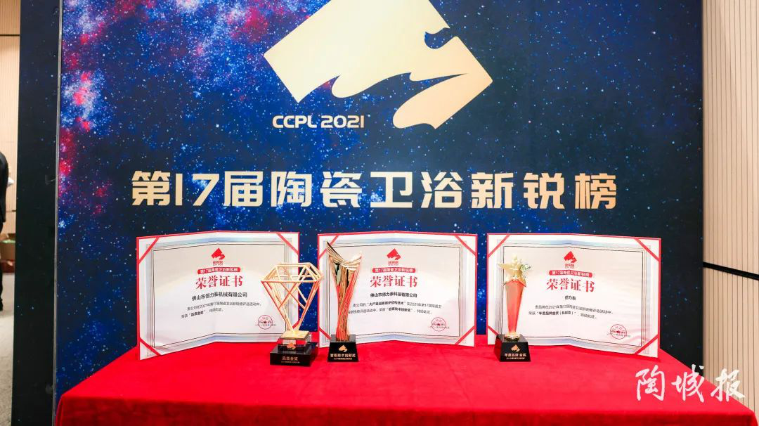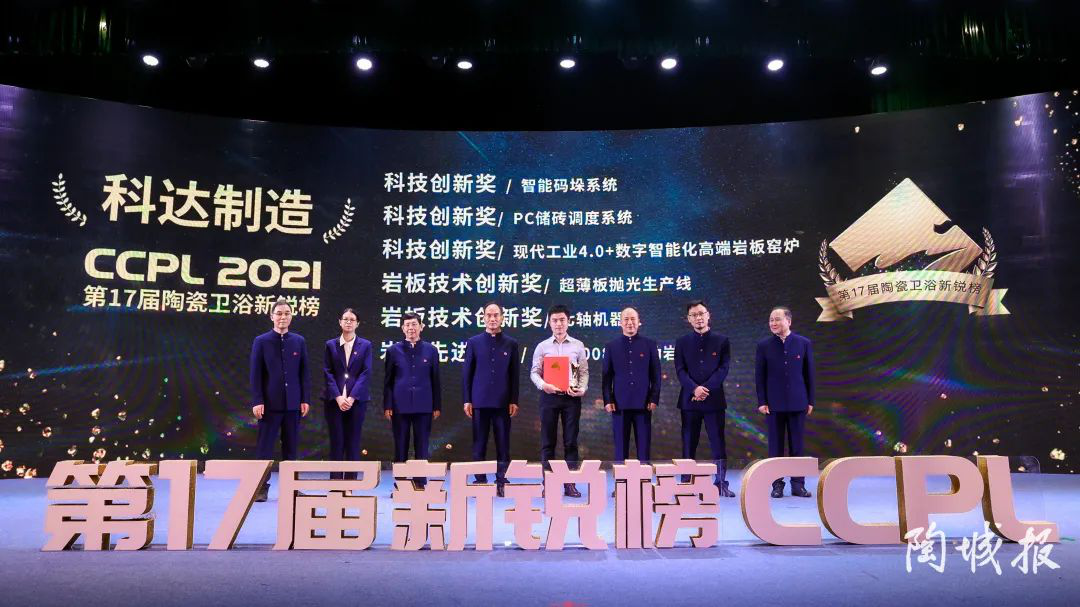 5月15日下午,佛山新媒体产业园云空间,近500名陶瓷卫浴产业人士齐聚于此,共同见证“第17届新锐榜颁奖典礼”的圆满举办。科达及力泰共斩获九项大奖,涵盖“岩板先进装备”、“科技创新奖(机械类)”、“岩板技术创新奖”、“品质金奖”和 “年度品牌金奖”五大类奖项。