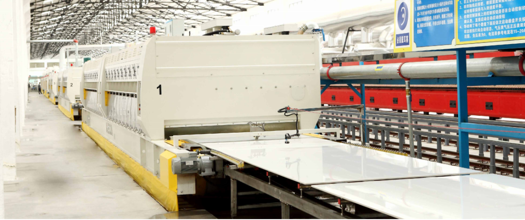 超薄板镜面抛光线,通过“滚动柔性压紧与校正”、“高速磨削工艺”、“磨头柔性升降与压力控制技术”等新技术的应用,实现了对厚度2.4-20mm、宽度1600-3000mm的岩板抛光,并即将在唯美江西生产基地投入使用。突破了行业瓶颈,助力岩板丰富应用场景,打开更广阔的市场天地。