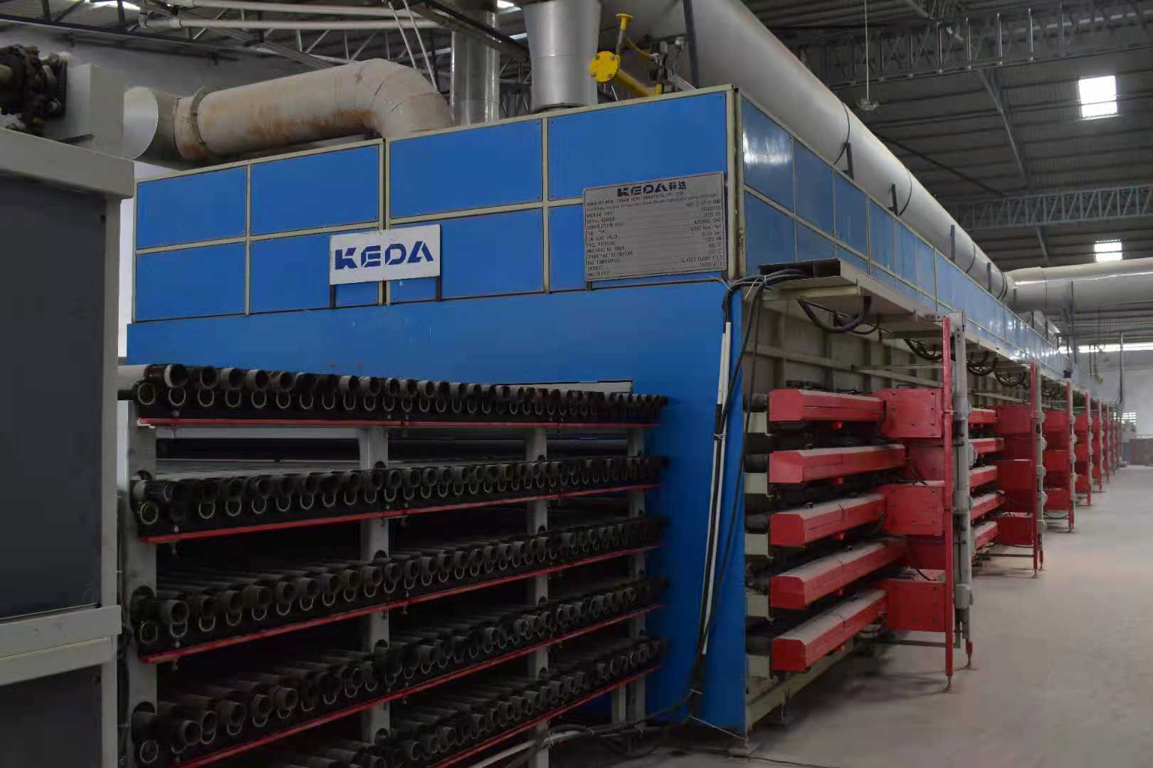 另外,该项目采用了KD5208全自动液压压砖机两台,生产10mm厚、600×600mm规格的釉面地砖,KD5208是科达在印度生产普通规格釉面地砖的主力机型,运行速度在11.5次每分钟或以上。