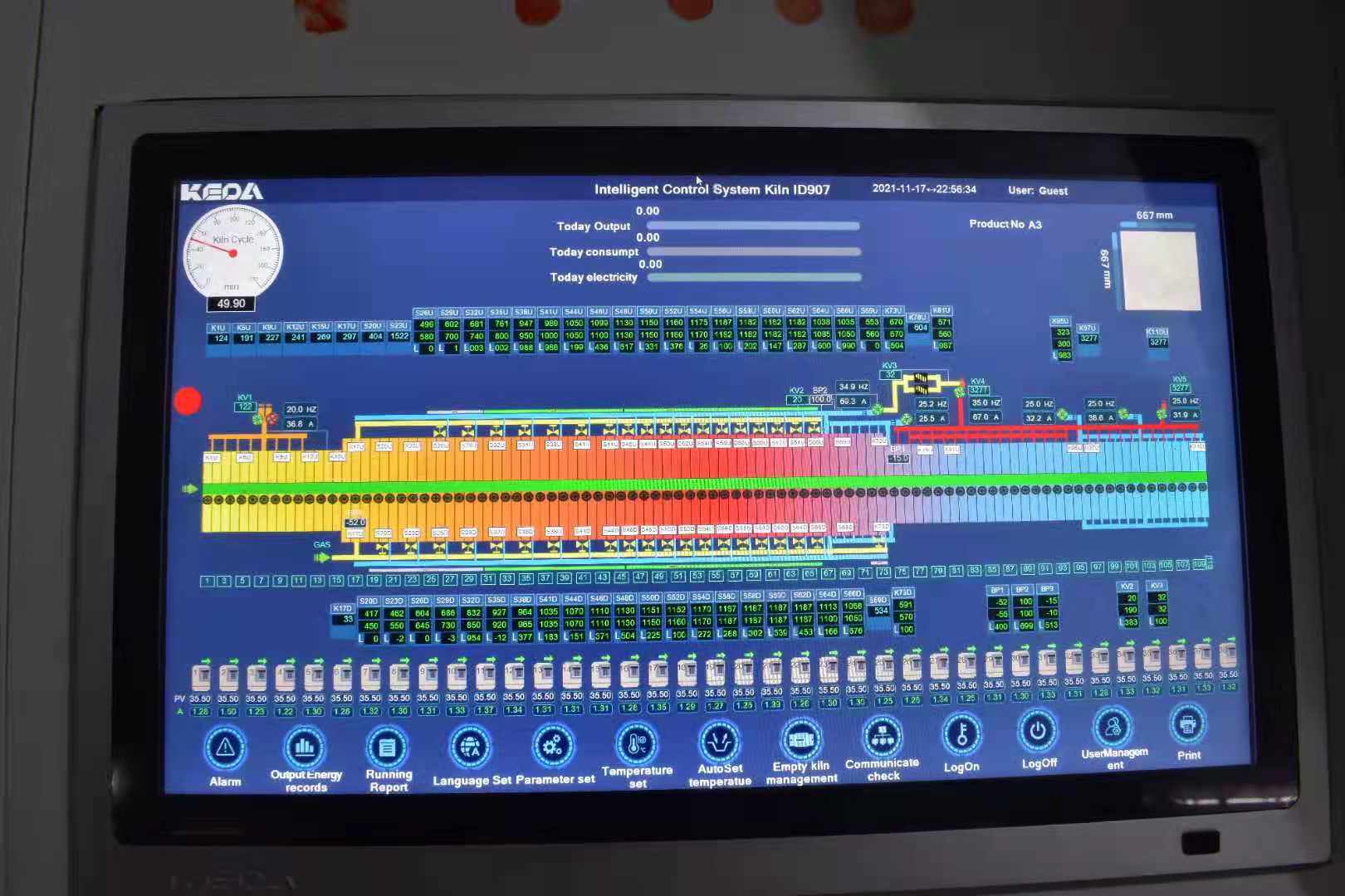 值得一提的是,高效节能智能窑炉配置的智能控制系统实现了生产过程的全自动化处理,同时进行大数据分析,多维度直观地显示产量、能耗、空窑等生产过程数据。