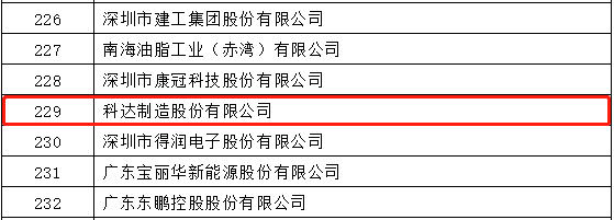 近日,广东省企业联合会、广东省企业家协会公布了“2021年广东企业500强”、“2021年广东制造企业100强”等榜单。其中,科达制造位列“2021年广东企业500强”榜单第229位,“2021年广东制造业企业100强”榜单第84位。