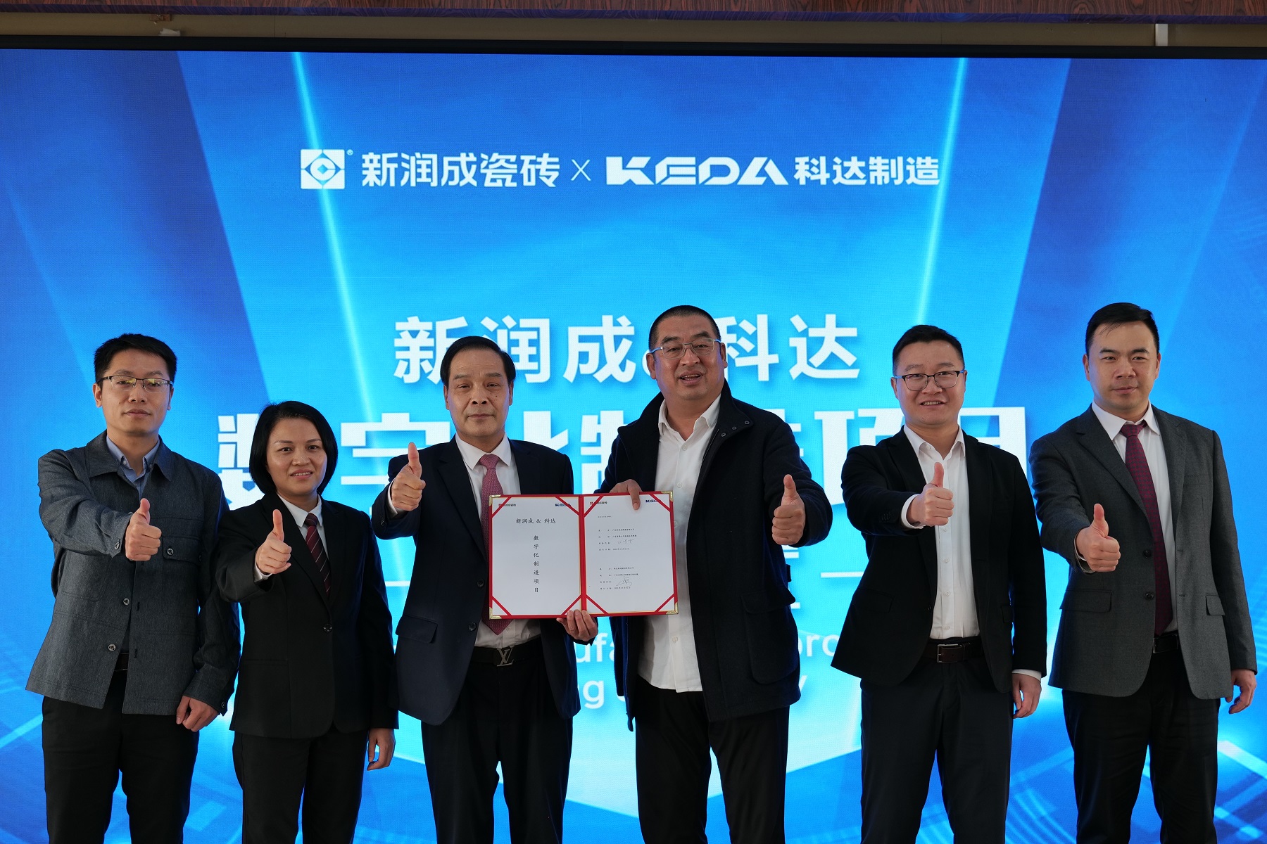 3月2日,新润成&科达数字化制造项目签约仪式在新润成公司隆重举行,拉开了新润成数字化制造项目实施的序幕。西樵镇党委副书记、镇长张国欣,新润成陶瓷董事长关润淡、新润成陶瓷总经理关伟洪、科达制造董事长边程、科达智能物联事业部总经理关庆辉、科达国内营销中心一部总监钟琳、广东销区总经理付春勇,新润成生产管理层负责人以及行业媒体记者等共同出席活动。