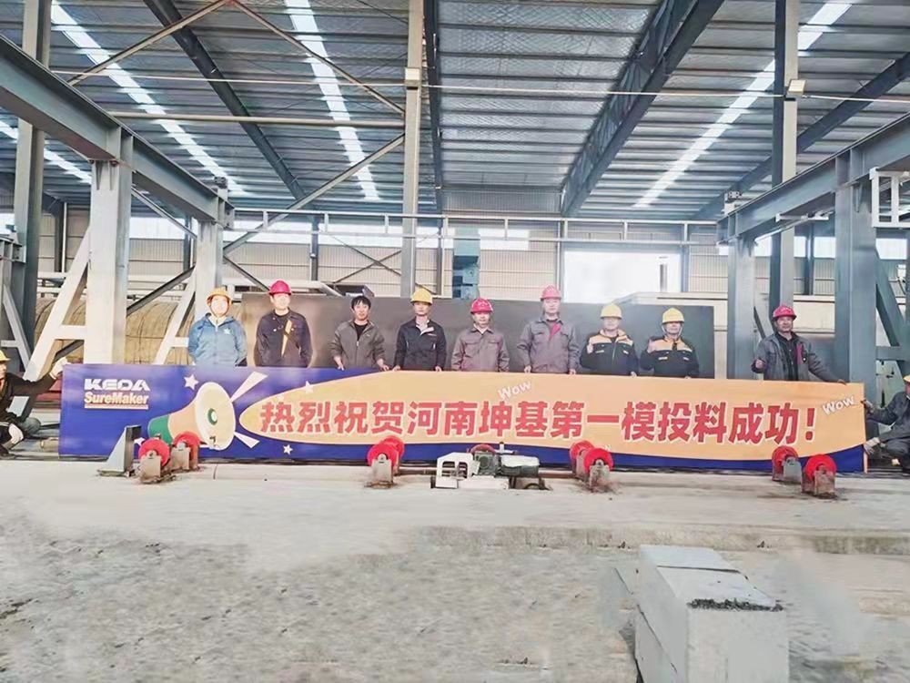 近日,位于河南省的渑池县坤基新型墙材(以下简称河南坤基)有限公司年产50万方蒸压加气混凝土板材生产线项目一次投料成功。该项目由科达新铭丰承建,是科达新铭丰在中原地区的又一重要项目。