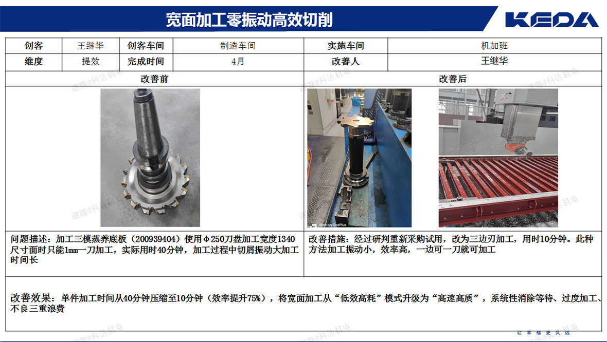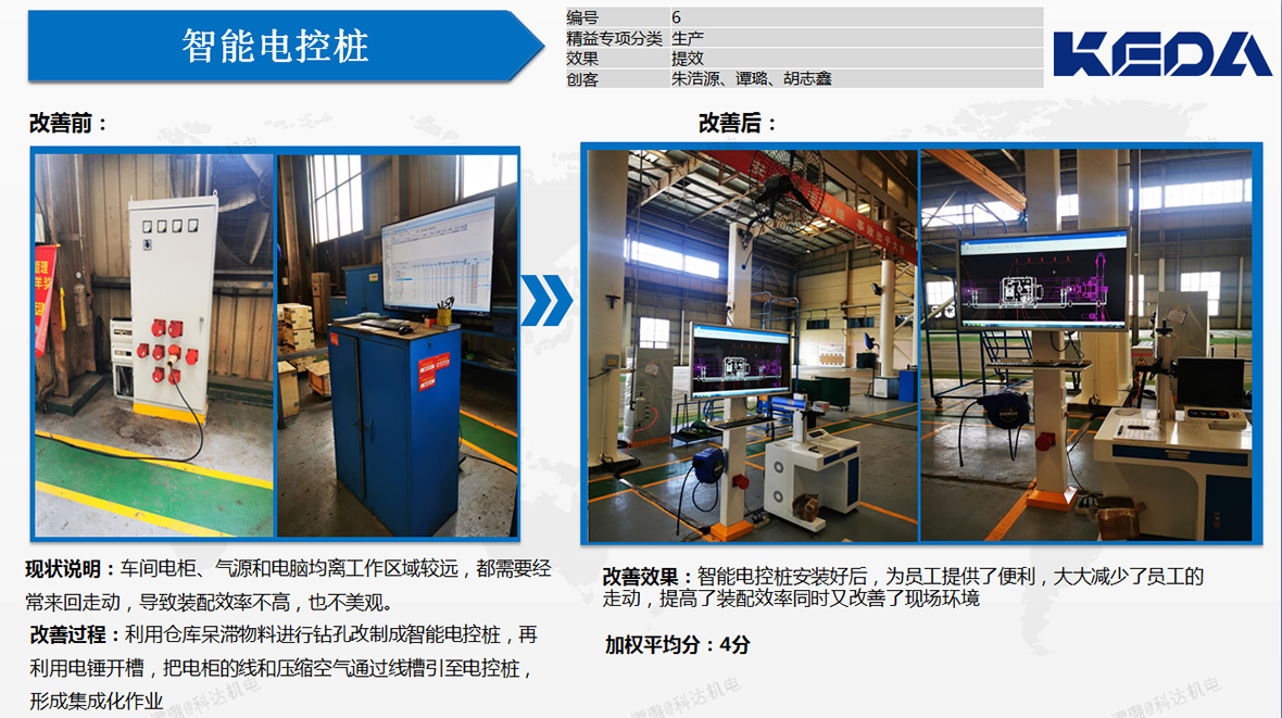 全员参与自主改善:2025年安徽科达机电针对“提质”、“增效”持续开展精益项目自主改善发布会。在多次发布会上,员工们设计了多种工装,提出了多个精益项目优化方案,有效提高了员工的工作效率,降低了劳动强度,减少了物料消耗。