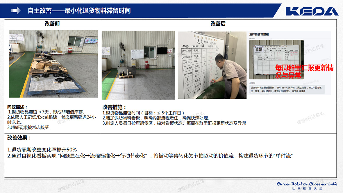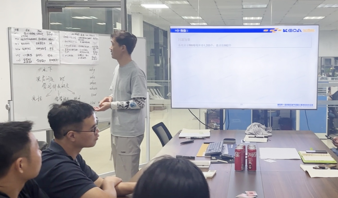 “物资管理”持续改善:面对物资组错发漏发的痛点,安徽科达机电没有停留在表面,而是赋能员工运用5WHY分析工具,深入挖掘问题根源,找出流程漏洞、标识不清、培训不足等真因,基于分析结果,实施了阶段性“清零”行动。