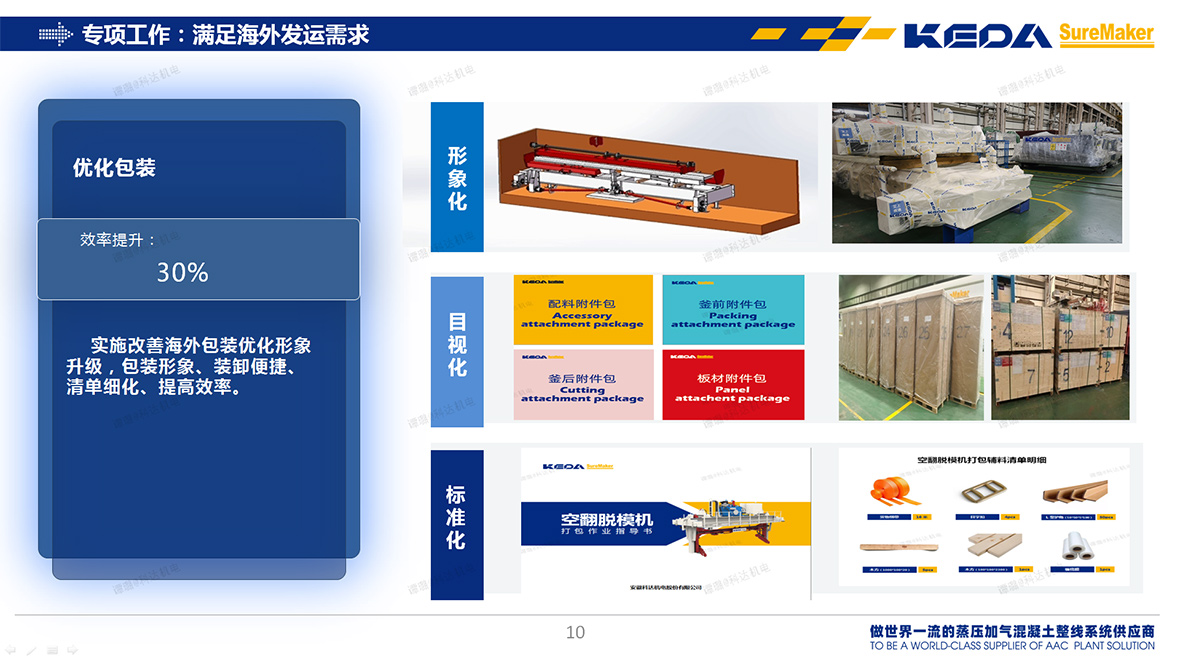 流程优化与标准化:针对设备海外发运的特殊性(长途运输、多环节交接、海关要求等),“海外打包专项组”梳理并优化了包装、标识、装箱清单等全流程。