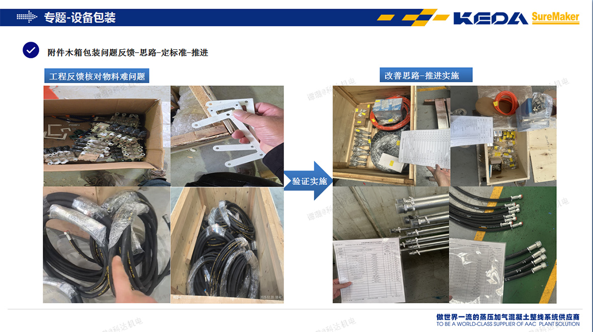 在全球化的浪潮中,海外设备的发运不仅涉及物流环节,更是客户体验与品牌信誉的关键战场。为精准满足客户的需求,安徽科达机电不断提升这一关键环节的服务品质。为此,在2024年9月,安徽科达机电工程供应中心成立了“海外打包专项组”,通过在包装材料、工艺等方面加大投入,定向实施改善海外打包工作的升级优化,系统性地提高海外打包效率、产品包装质量、装卸货方式、装运清单细化、外观标识等多个方面,全面提升海外产品打包发运质量的保障。