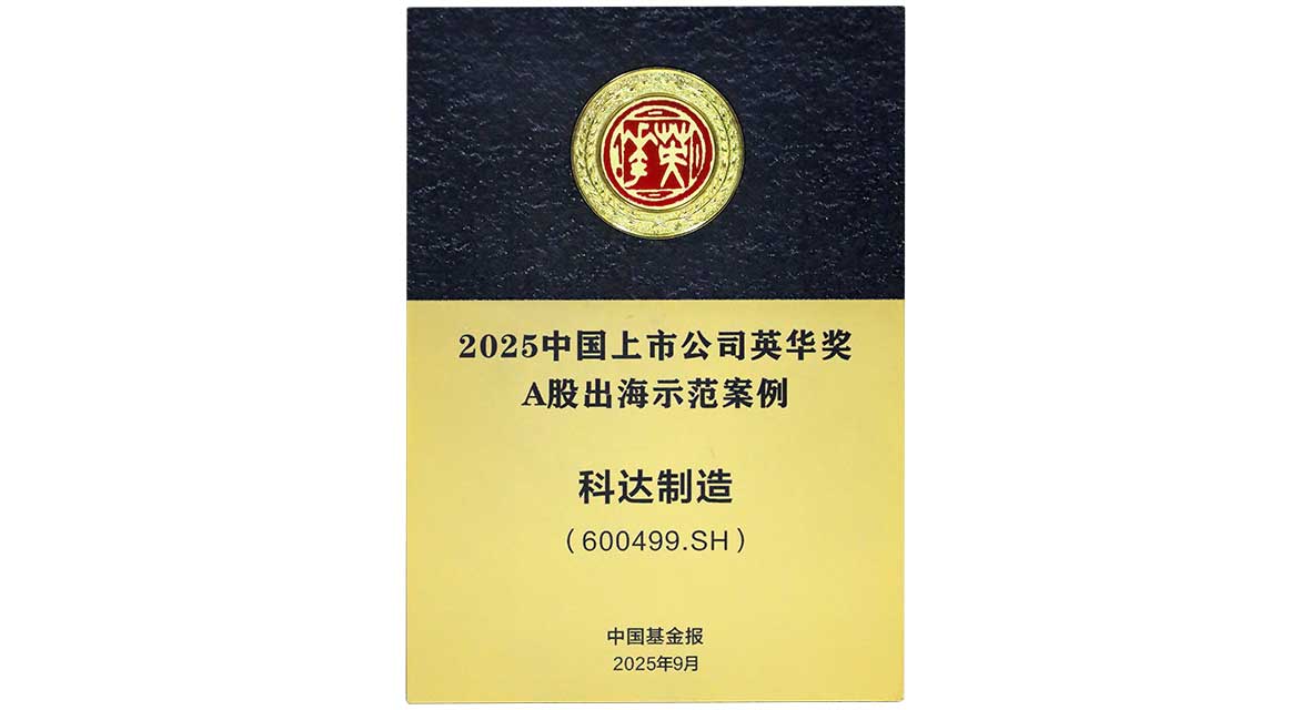 2025年9月16日,由中国基金报主办的2025中国资本市场发展论坛暨上市公司论坛在上海举办。在此次论坛上,科达制造(股票代码:600499)凭借优异的全球化成果、广泛的行业影响力,以及扎实的社会责任实践,成功荣登“2025中国上市公司英华奖A股出海示范案例”榜单。