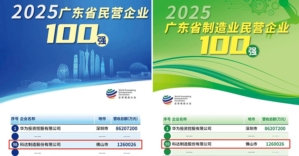 9月29日,2025世界粤商大会在广州开幕。会上,“2025广东省民营企业100强”系列榜单正式对外发布。科达制造再次跻身“广东省民营企业100强”,位列第98位,并在“广东省制造业民营企业100强”中排名第59名。