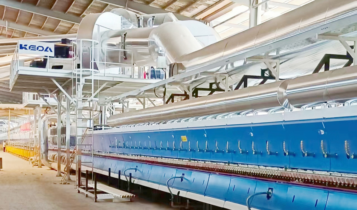 该线主要生产300×400(mm) 高品质西瓦产品,设计产能230000片/天,应用了多项科达专利技术,如助燃风加热系统、高效节能窑炉喷枪、窑体综合保温升级系统、余热综合回收利用系统,合理优化风管路设计。
