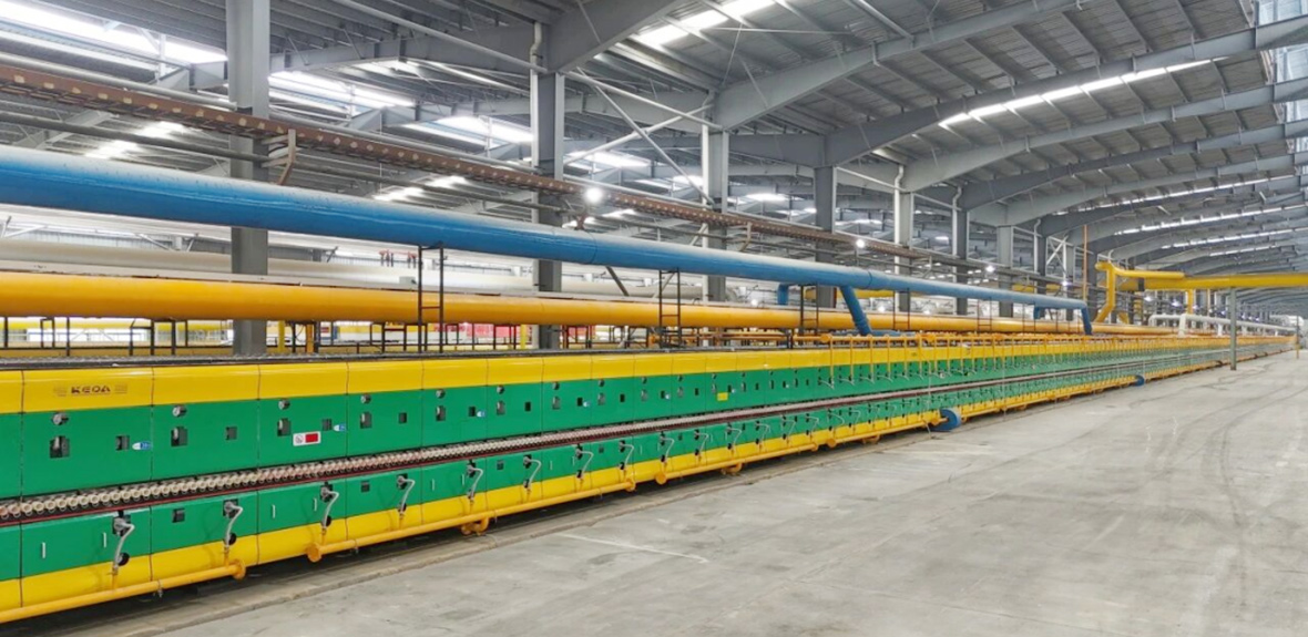 2017年,金意陶集团第一条发泡陶瓷生产线在佛山三水投产,这也是科达陶机的第一代发泡陶瓷辊道窑,日产量45m³。发展到2025年,科达陶机承建的金意陶集团旗下景德镇金绿能第六代生产线投产,日产能已达350m³,提升近8倍,而且全线长度近888米,创下行业新纪录。