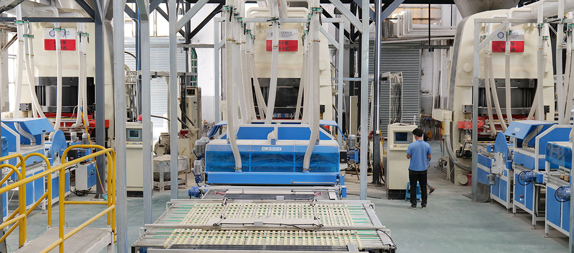 该智能生产线包含从压机到包装的整线设备,日产能15000㎡,该线投产首日品质就达到5A技术标准,首日优等率达到92%以上,并且首日便达到合同产量。