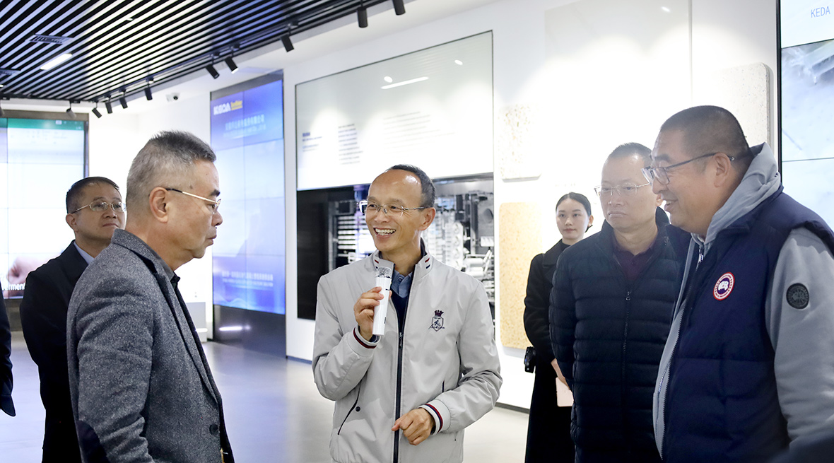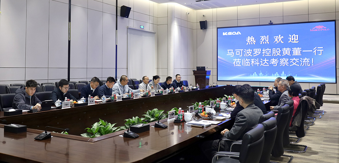 1月21日,马可波罗控股股份有限公司(以下简称“马可波罗”)董事长黄建平、总裁谢悦增、副总裁刘晃球、总裁助理钟伟强等一行莅临科达制造总部参观指导并深度交流,公司董事长边程,董事、总经理杨学先,董事、海外建材业务板块总裁李跃进等公司高层团队热情接待了到访嘉宾。