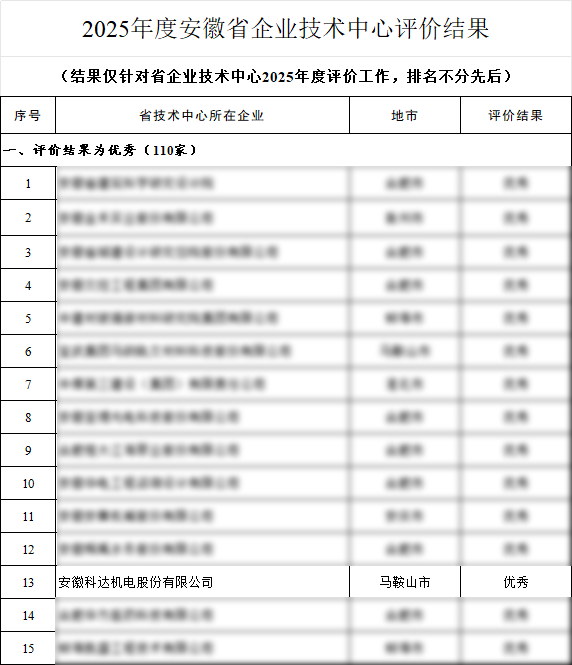与此同时,安徽省经信厅公布了《关于2025年度安徽省企业技术中心评价结果的公示》,安徽科达机电股份有限公司省级企业技术中心评价结果为优秀,评价优秀企业全省占比约5.3%。