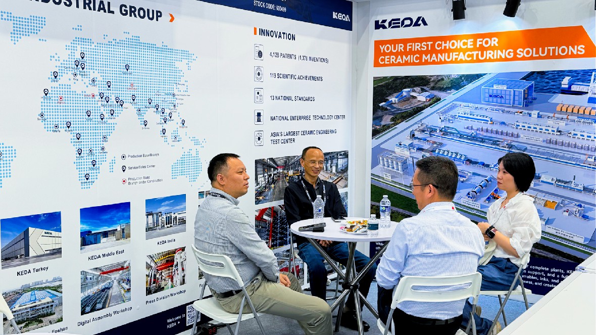 与此同时,科达陶机也在本次展会上展示了陶瓷智能制造及工艺服务整体解决方案,与全球新老朋友共叙情谊、洽谈交流。