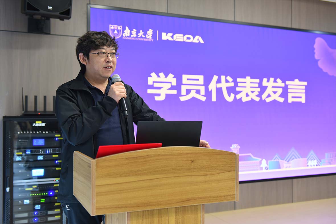 福建科达新能源的李海光作为优秀学员代表,为大家分享了他的三点深刻感悟:知识体系的重构与升华、跨界交流所带来的思维突破,以及终身学习理念在心中的扎根。他动情地表示:“感谢公司提供的宝贵学习机会,感谢南京大学教授们的精心传授,感谢同学们在学习旅程中真诚的分享和思想的碰撞。管理既是一门学问,也是一种修行。希望每个人能成为一个更好的管理者。”