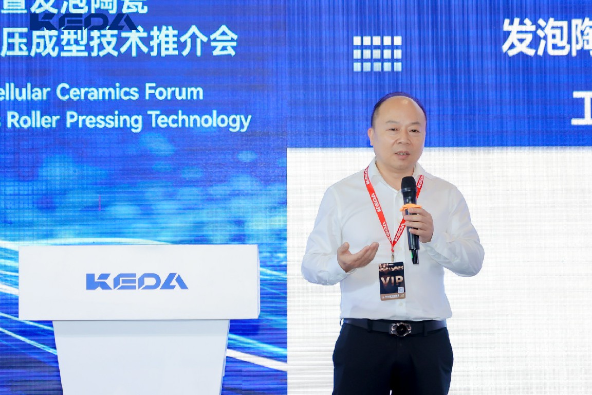 4月22日,第七届发泡陶瓷论坛暨发泡陶瓷连续辊压成型技术推介会在佛山潭洲国际会展中心7号馆科达陶机展位举办。本届论坛由佛山市陶瓷学会主办、科达陶机承办,会上首度推介了科达陶机自主研发的发泡陶瓷连续辊压成型工艺技术。该技术突破了传统堆粉成型的工艺制约,将引领发泡陶瓷产业往薄型方向发展。论坛由科达陶机陶瓷工艺研究所所长、高级工程师钟路生主持。