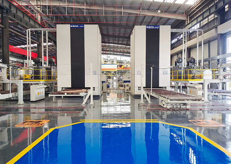 有机 / 无机人造石英板材的专业化生产设备,技术领先,运行稳定,自动化程度高。2006 年国内第一条人造石英板生产线投入使用,经过多年的技术积累、产品升级和工艺研发,设备与工艺日臻完善,在国内和海外建设了多条人造石英板整厂项目,是高效、环保、智能化的行业标杆。